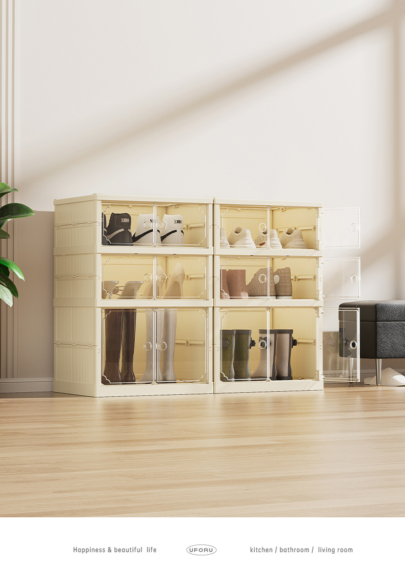 A folding shoe cabinet transparent shoe rack double row large capacity magnetic suction opposite door