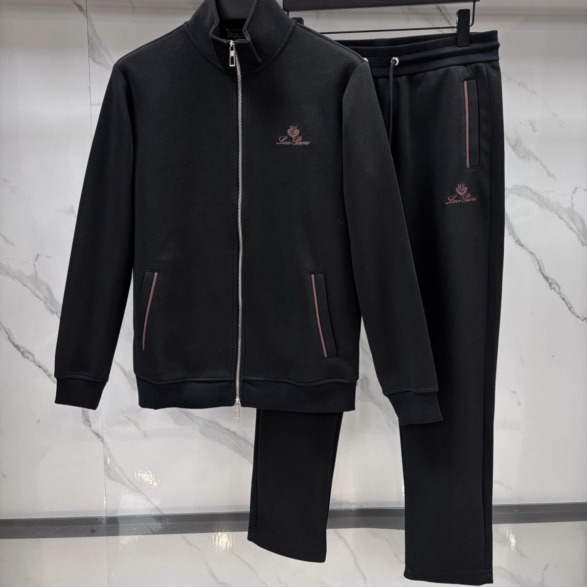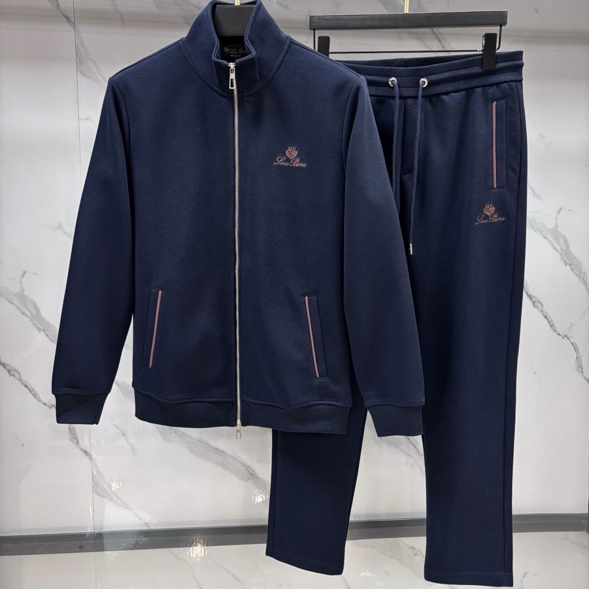Trendy men's clothing Italian niche versatile lp casual two-piece set autumn and winter letter embroidered slim suit jacket