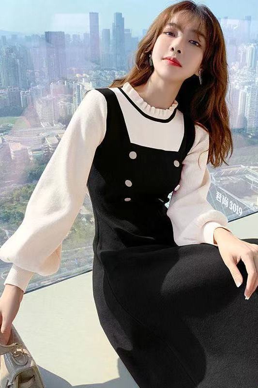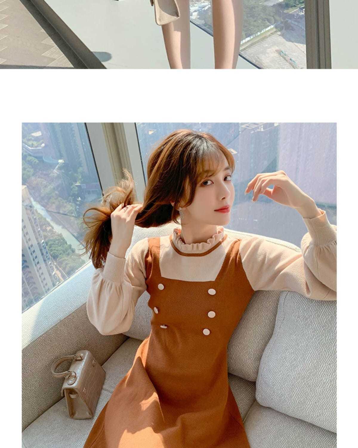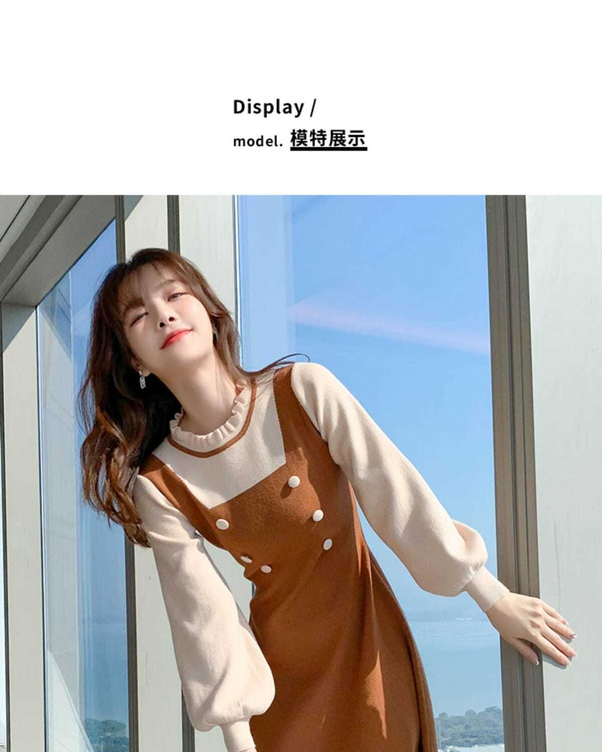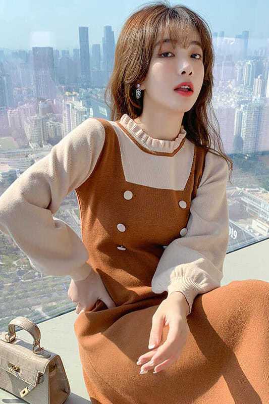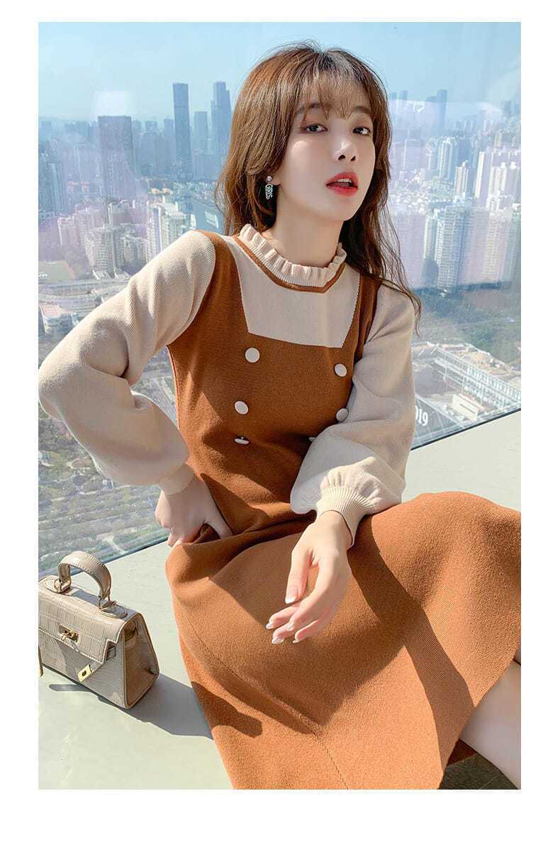 P long-sleeved knitted dress
