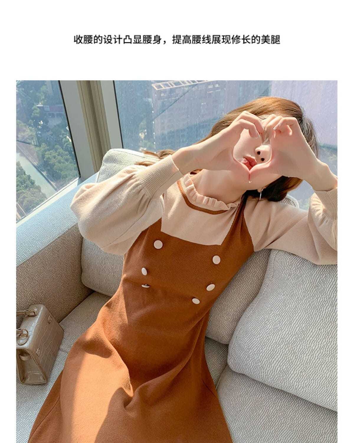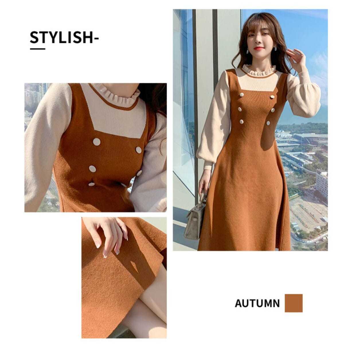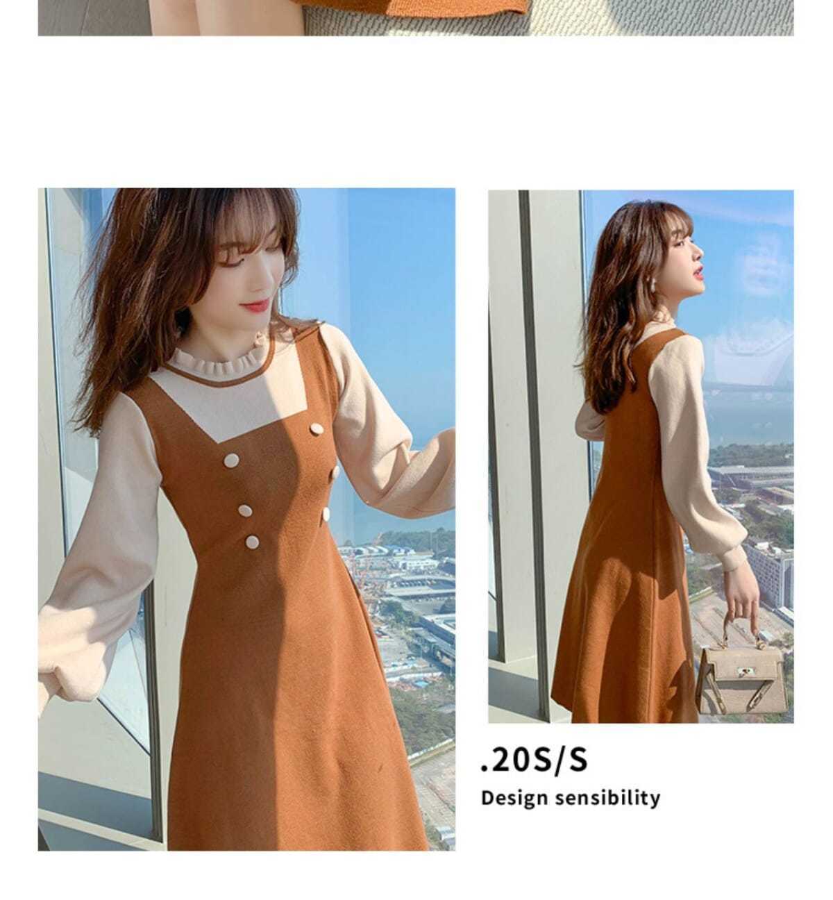 P long-sleeved knitted dress