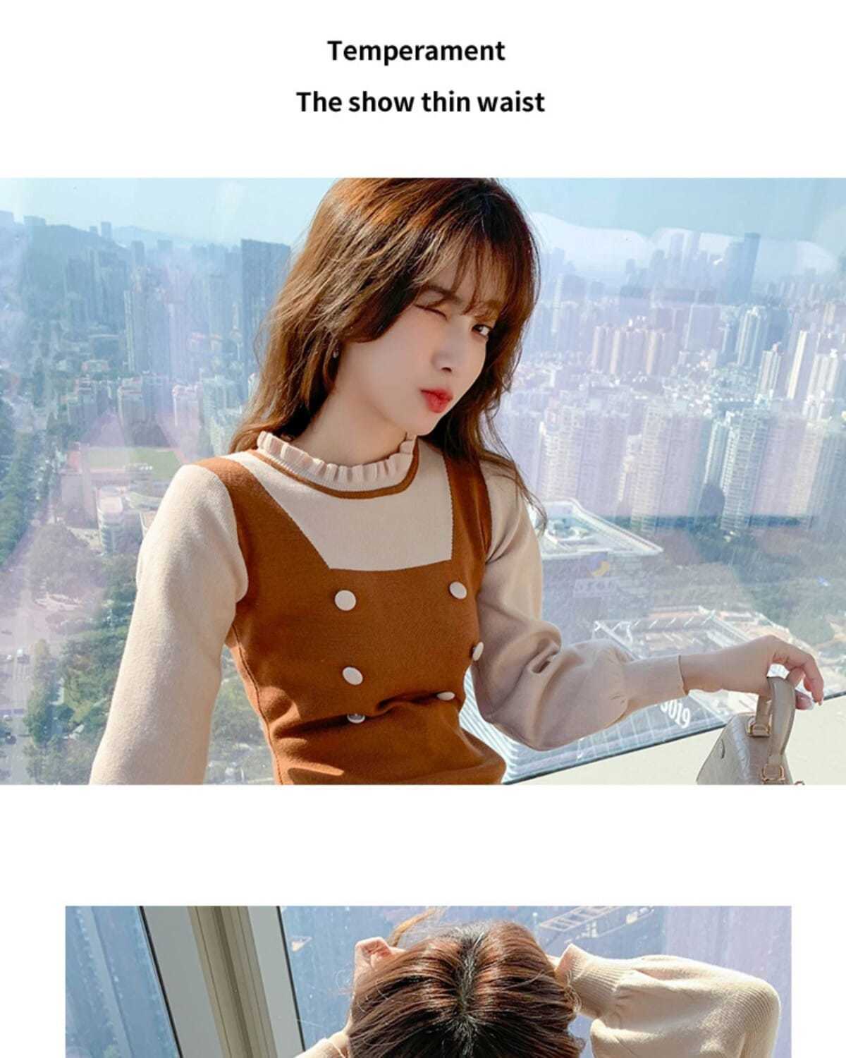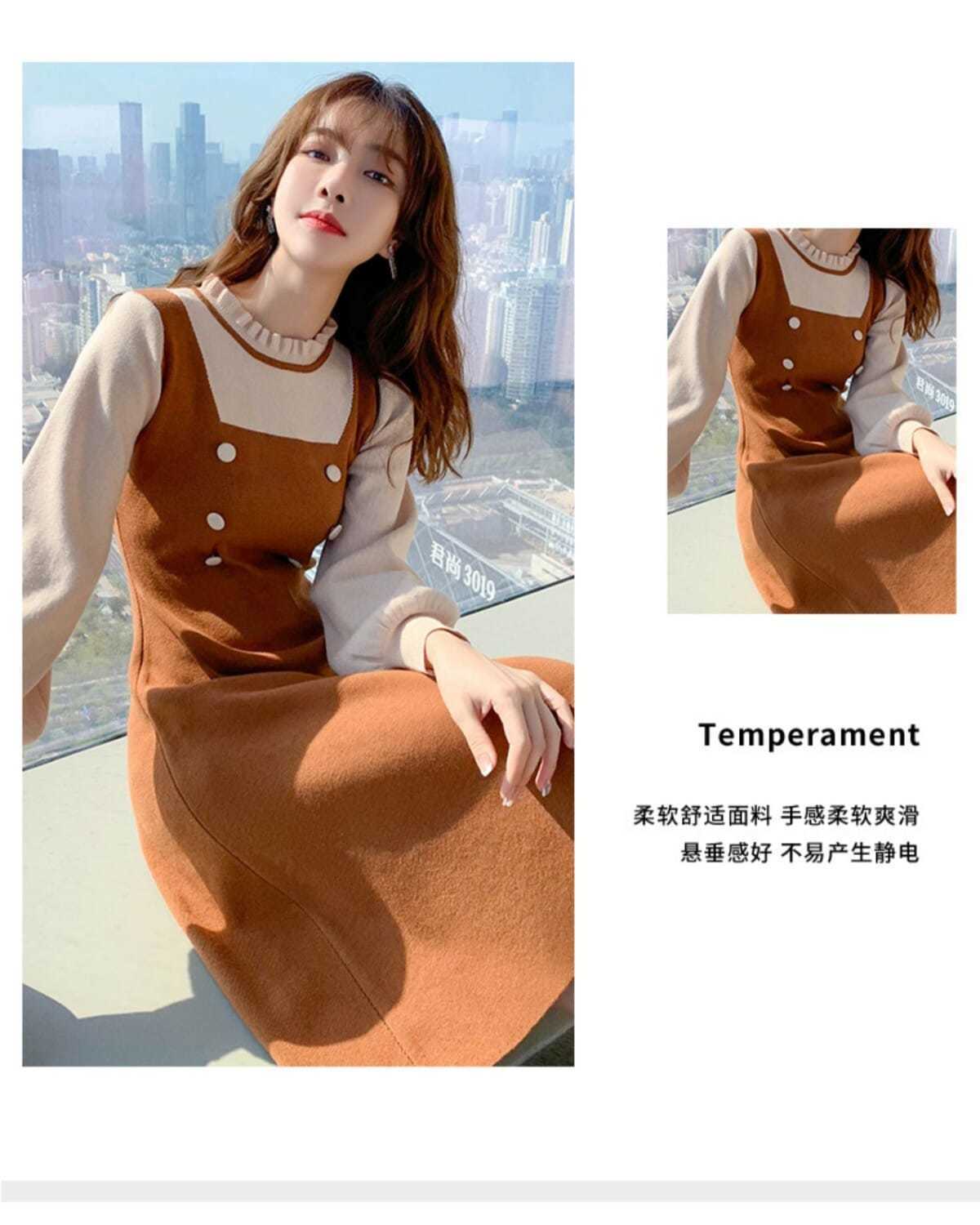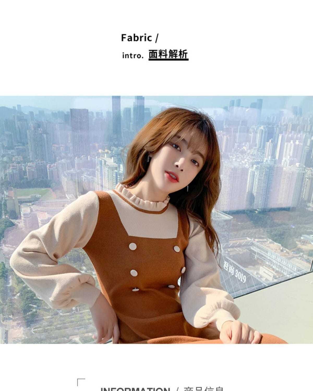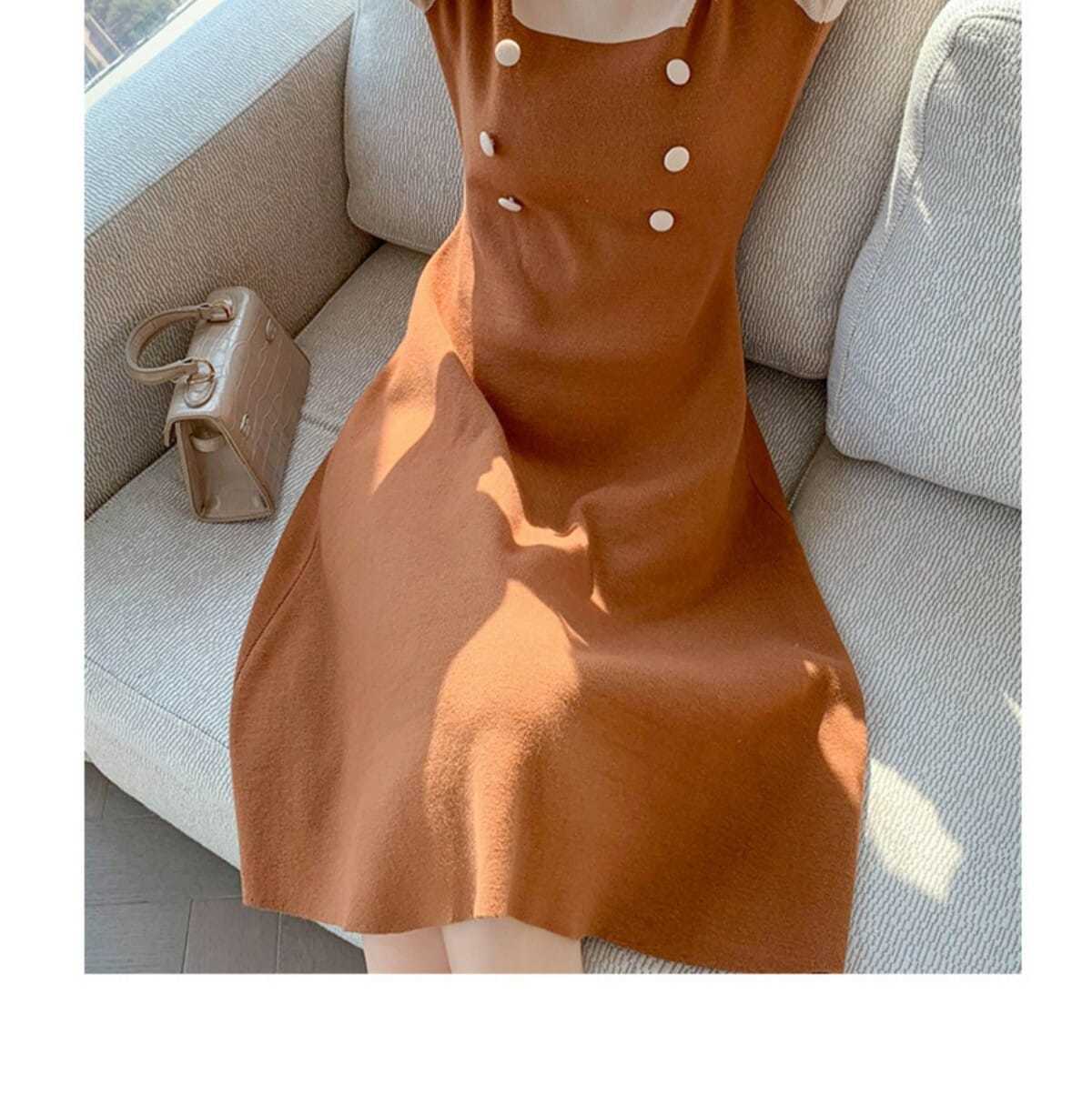 P long-sleeved knitted dress