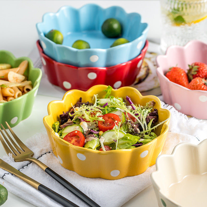 A polka dot ceramic bowl