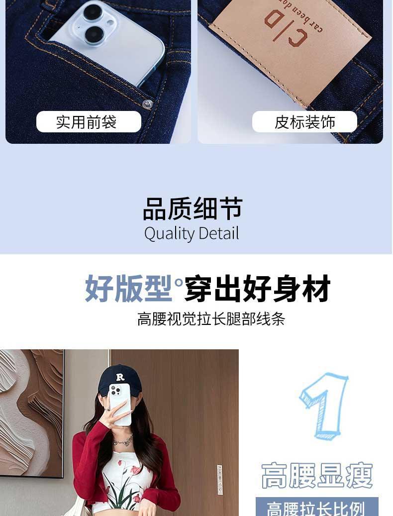 Denim Blue Straight-Leg Jeans for Women Spring Summer High Waist Stretchy Draped Wide-Leg Pants