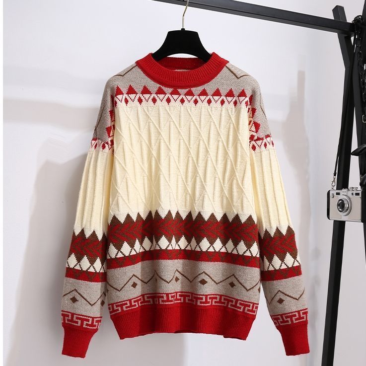 In autumn and winter, a complete set of 2025 new large-size women's clothing, literary and artistic style, age-reducing sweater, waist cover skirt, two-piece set